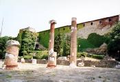 Il Colle di San Giusto: colonne ricostruite della Basilica Romana e scorcio del Castello di S. Giusto